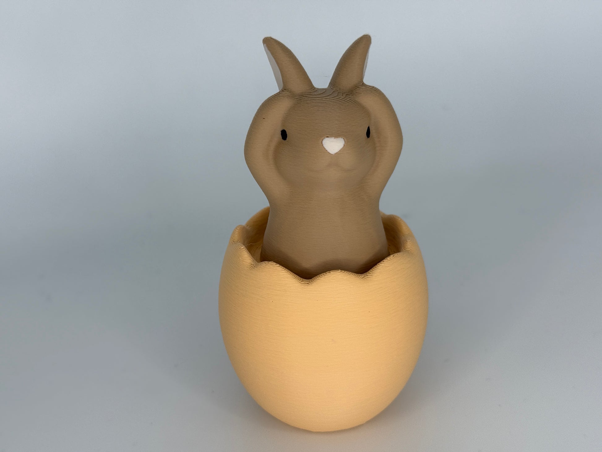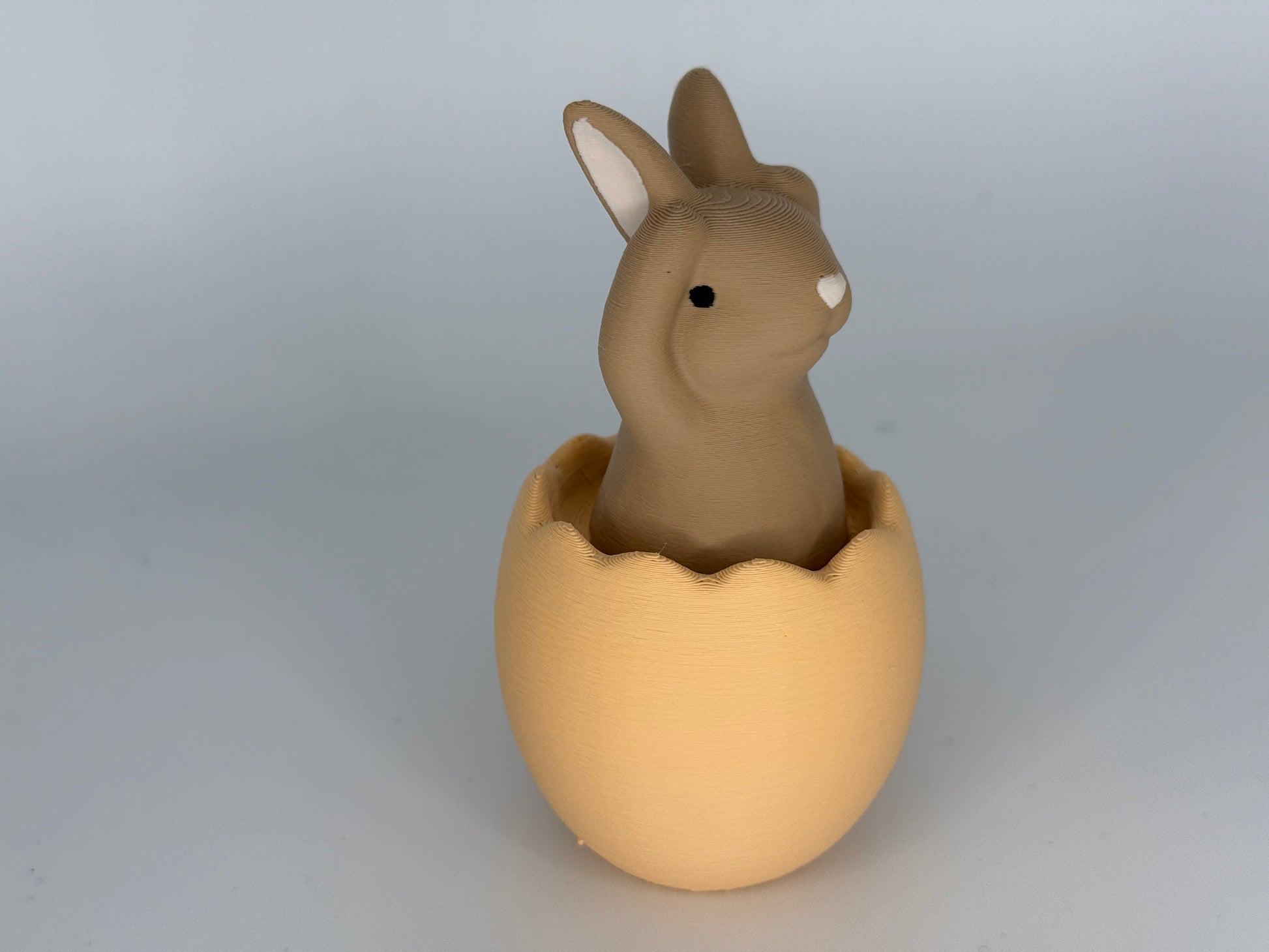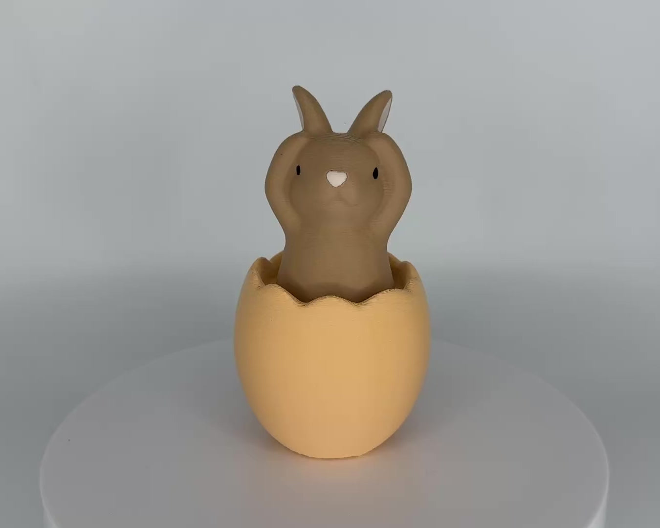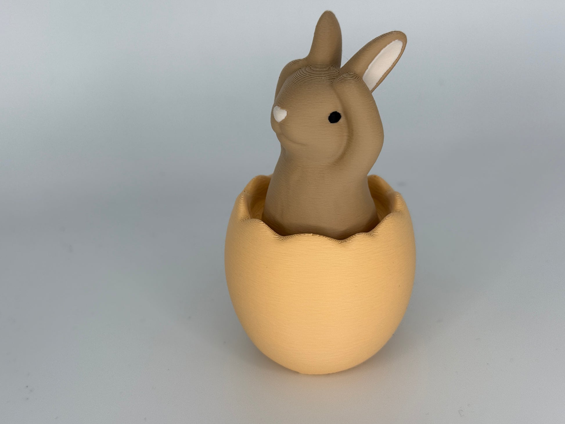 3D-gedruckter Hase in Osterei mit Pfoten auf den Ohren