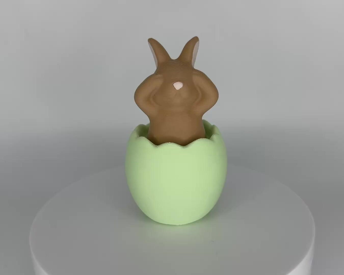3D-gedruckter Hase in Osterei mit Pfoten auf den Augen