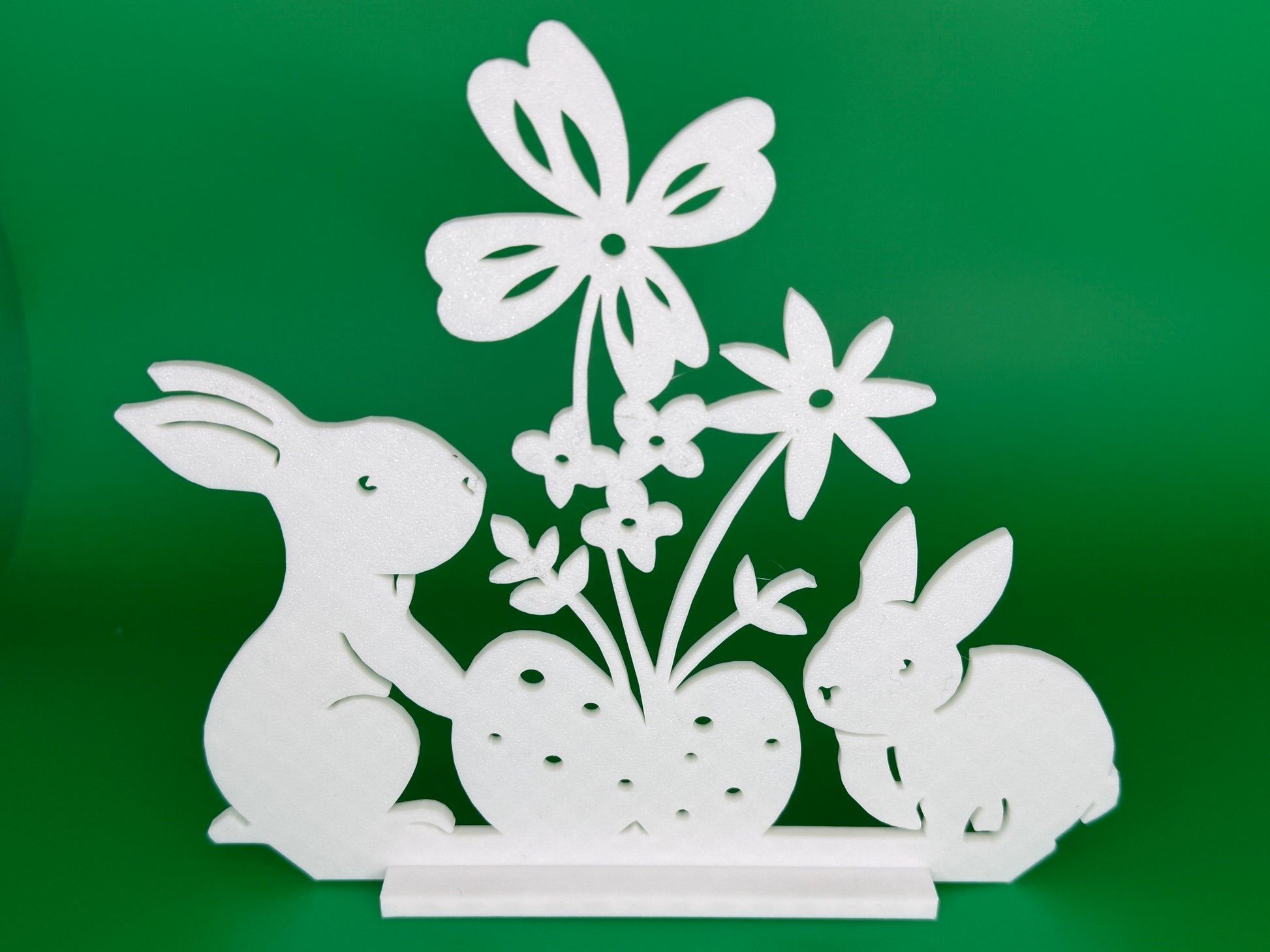 3D-gedrucktes Stehbild mit Hasen in osterlicher Landschaft