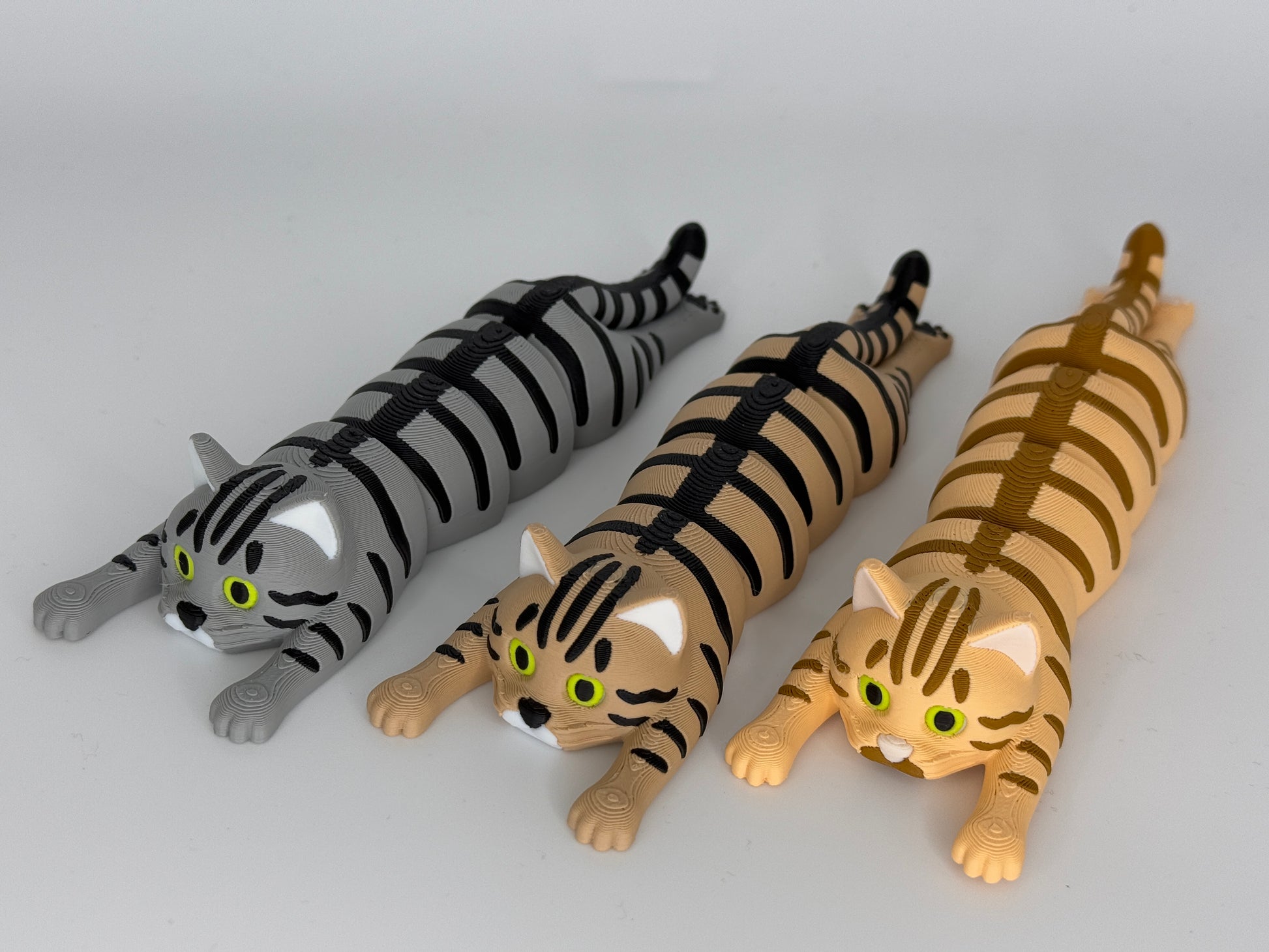 Set aus 3D-gedruckten flexiblen Katzen getigert