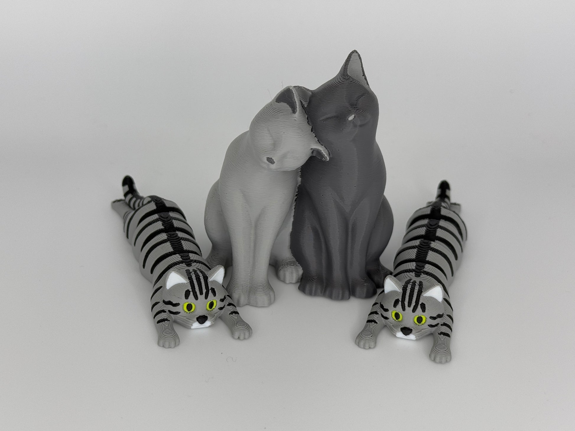 Set aus 3D-gedruckten liebenden & flexiblen getigerten Katzen